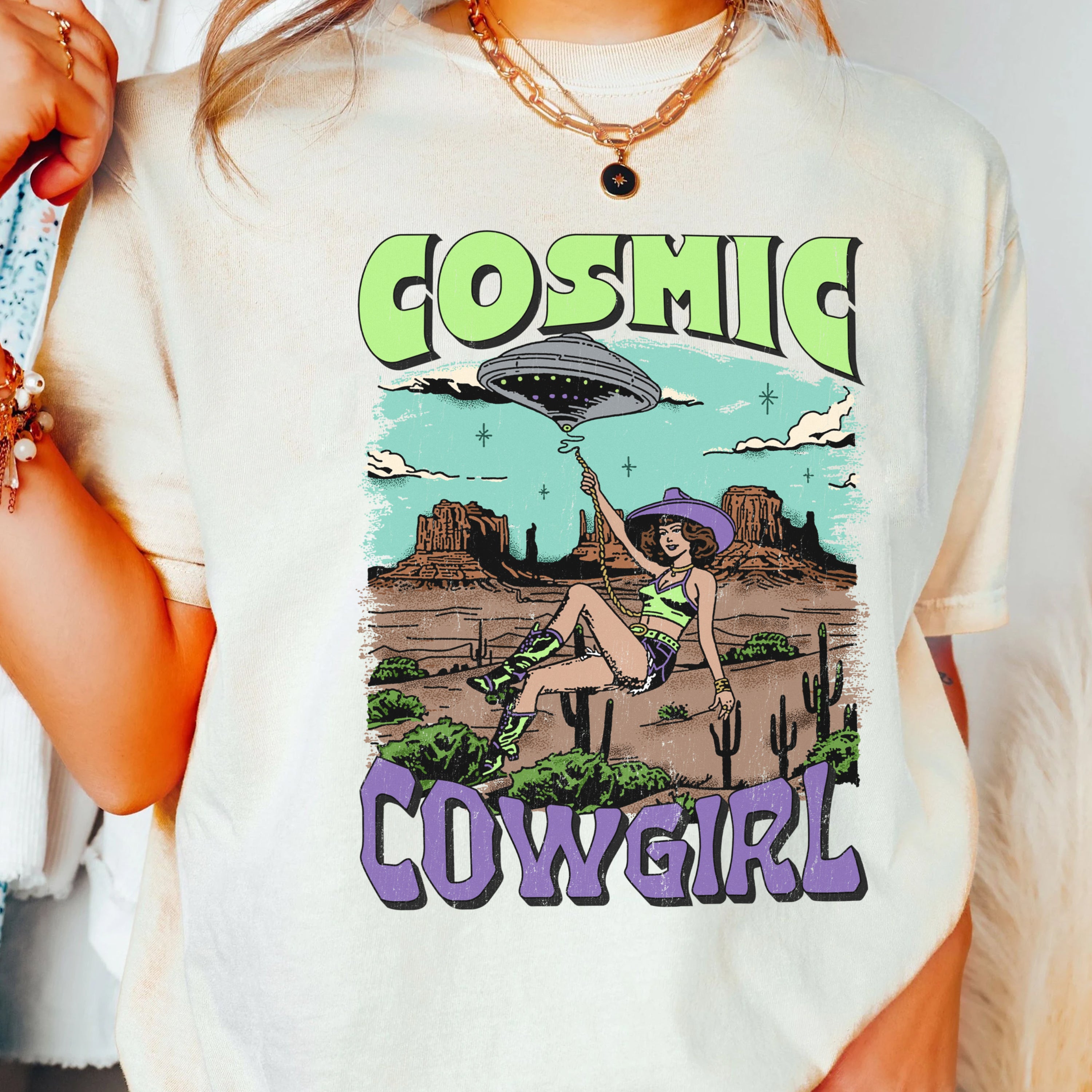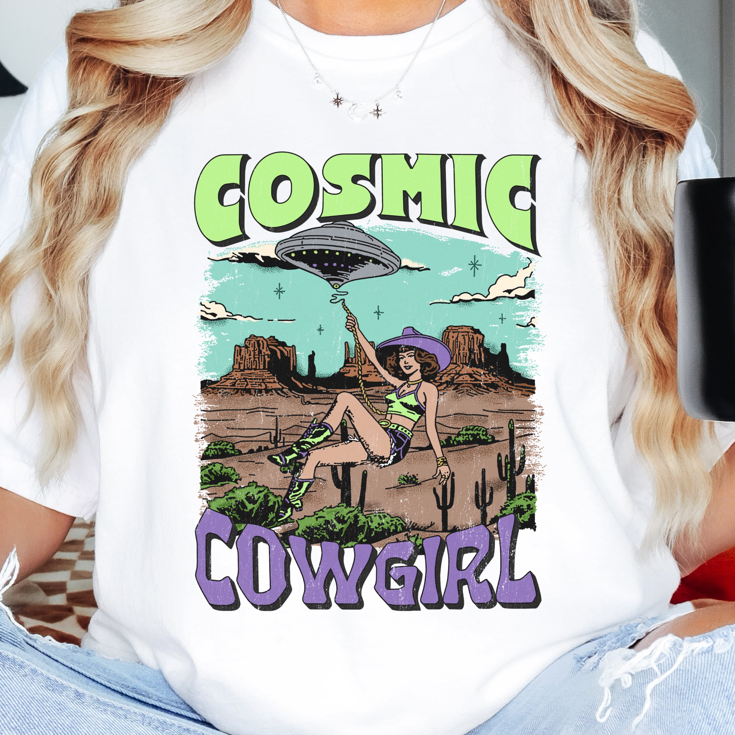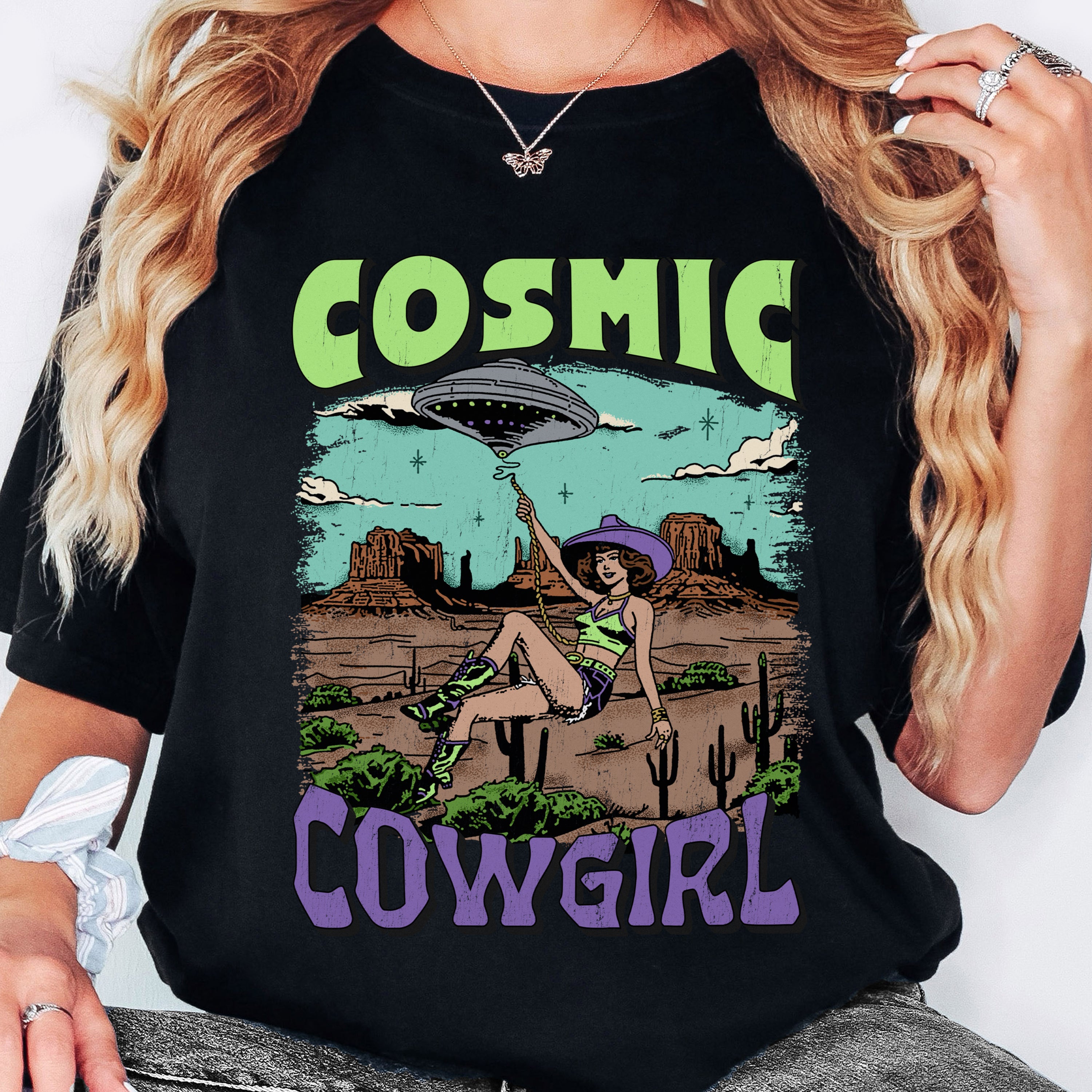 Blast off into bold style with our Cosmic Cowgirl Premium Tee! This out-of-this-world design features a radiant cowgirl in neon... Read more