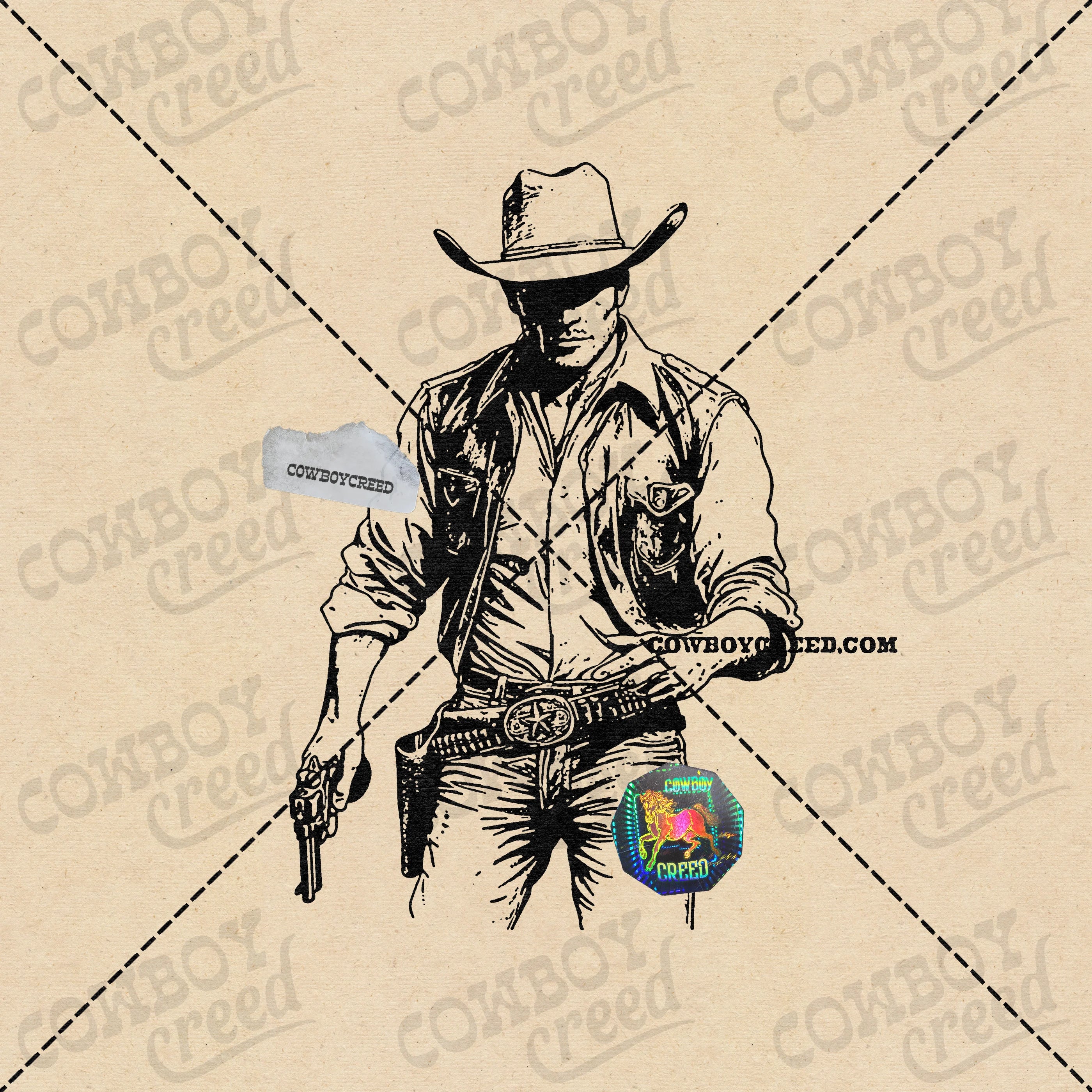 The Cowboy Creed stickers, lettering & dotted lines will not be included in your download, these are only shown in the preview for copyright protection.
