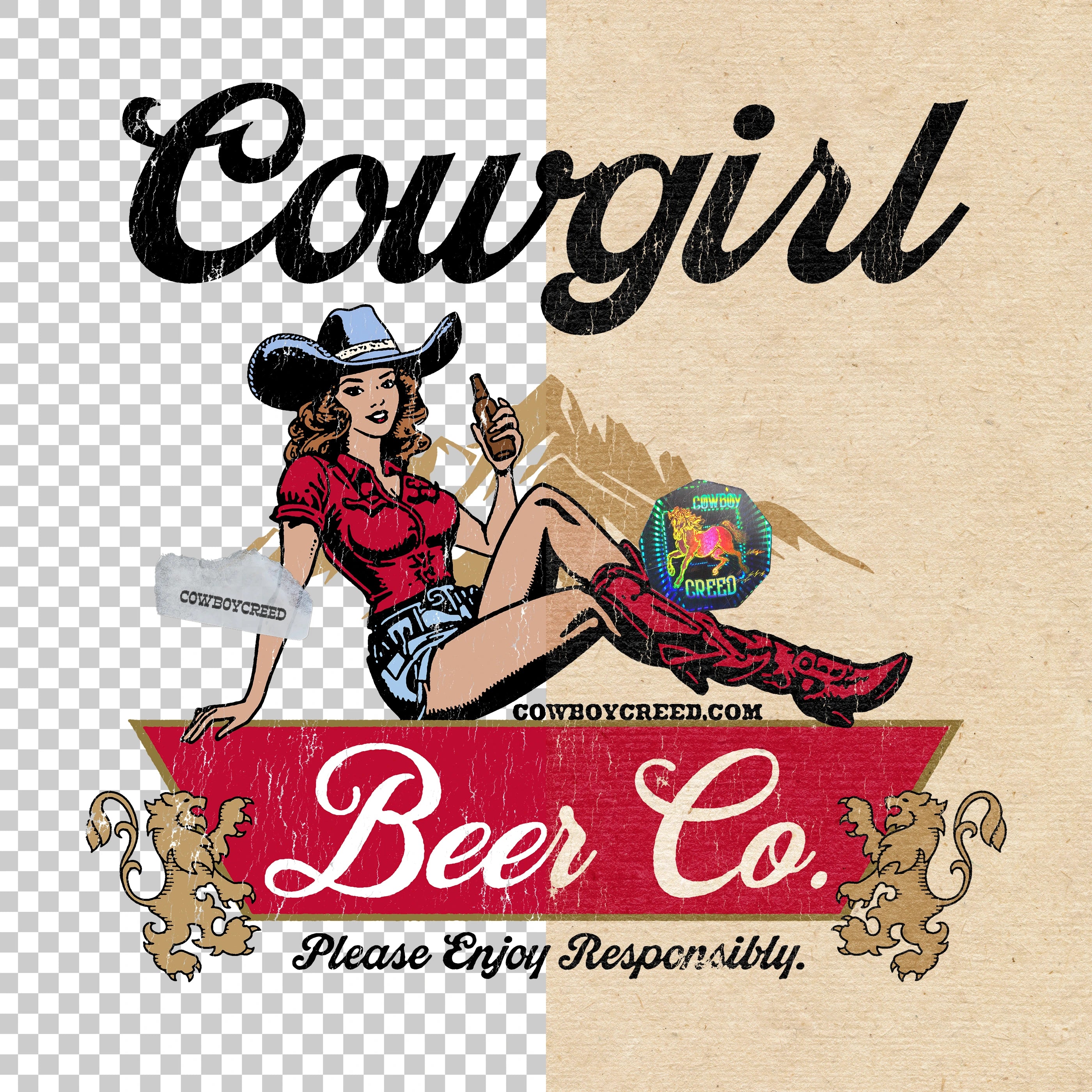 Introducing an exceptional piece of artwork that's sure to ignite your creativity! Cowgirl Beer Co. 2 is now available for digital download, offering a meticulously crafted illustration that captures the essence of cowgirls in the American Wild West. Whether you're a graphic designer, entrepreneur, or simply a lover of Vintage Western art, this will enhance your projects or your décor.