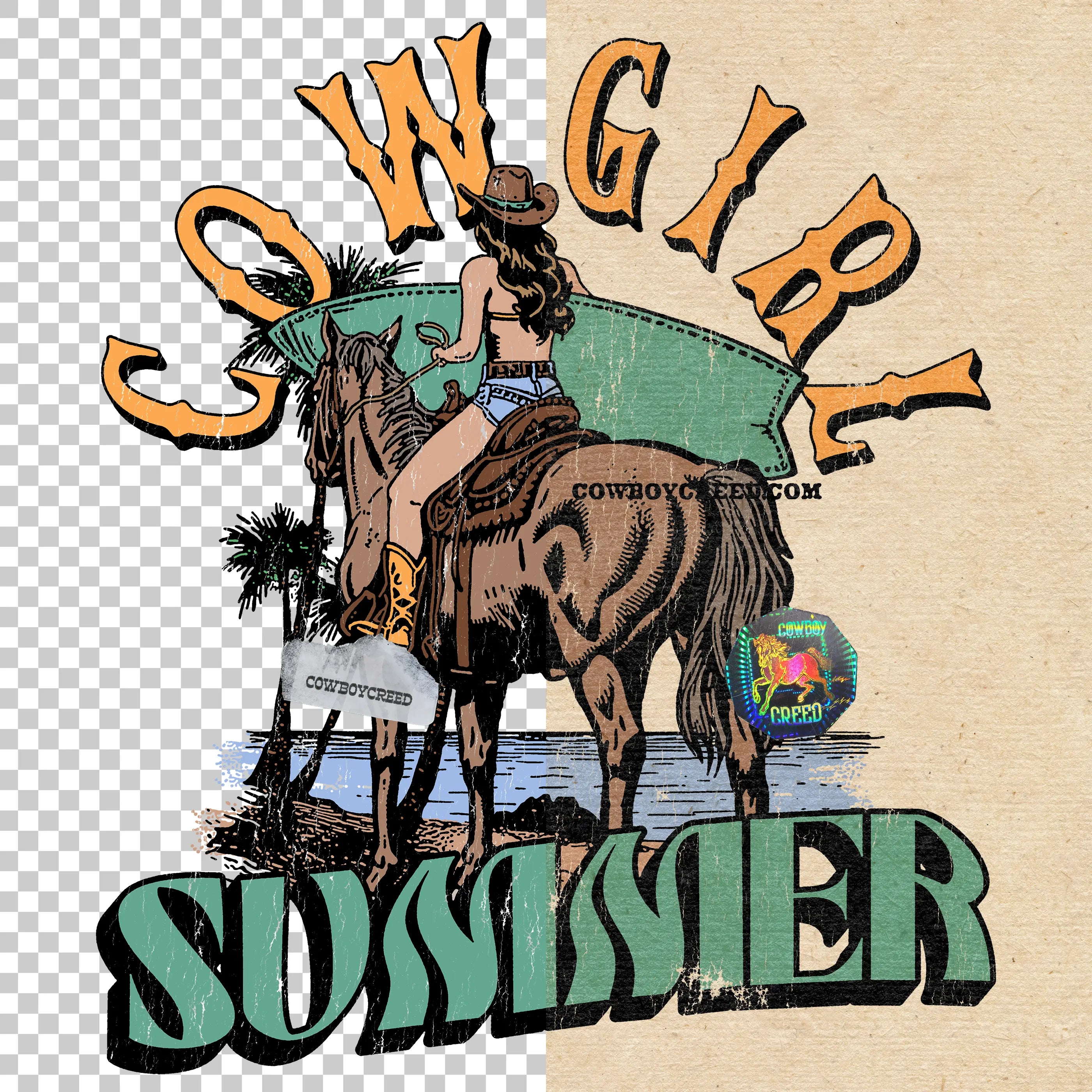 Introducing an exceptional piece of artwork that's sure to ignite your creativity! Cowgirl Summer is now available for digital download, offering a meticulously crafted illustration that captures the essence of life in the American Wild West. Whether you're a graphic designer, entrepreneur, or simply a lover of Vintage Western art, this will enhance your projects or your décor.