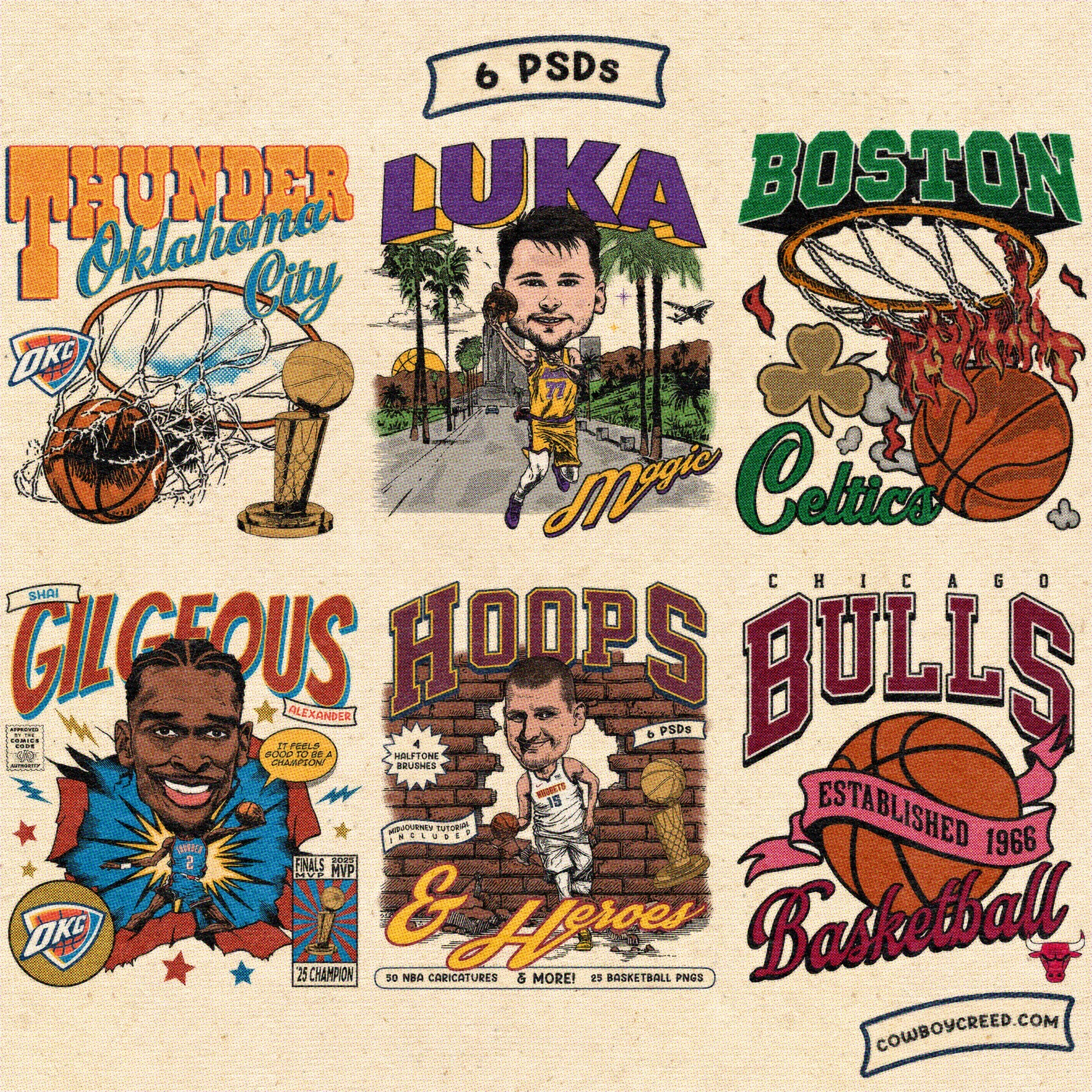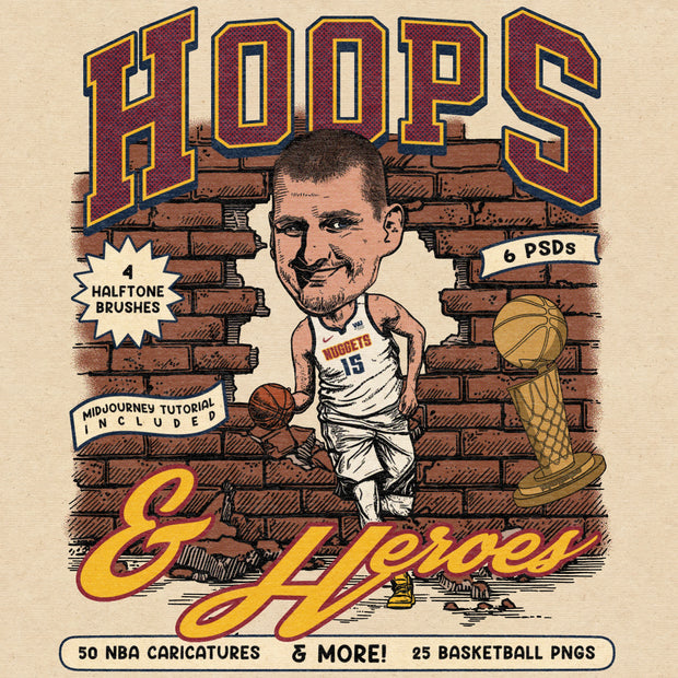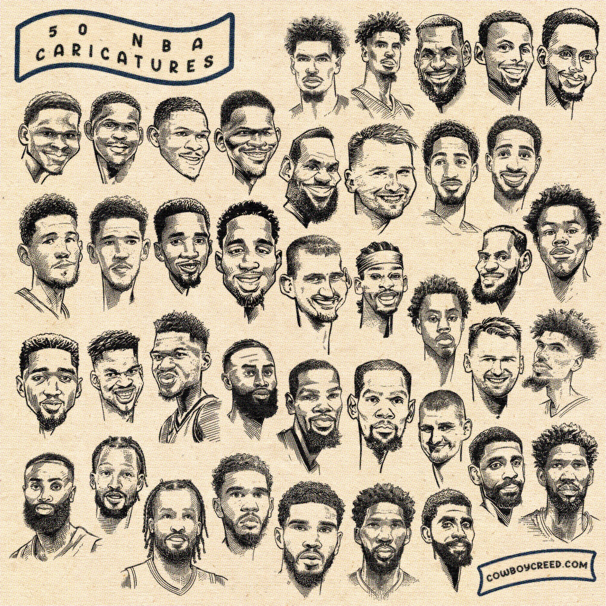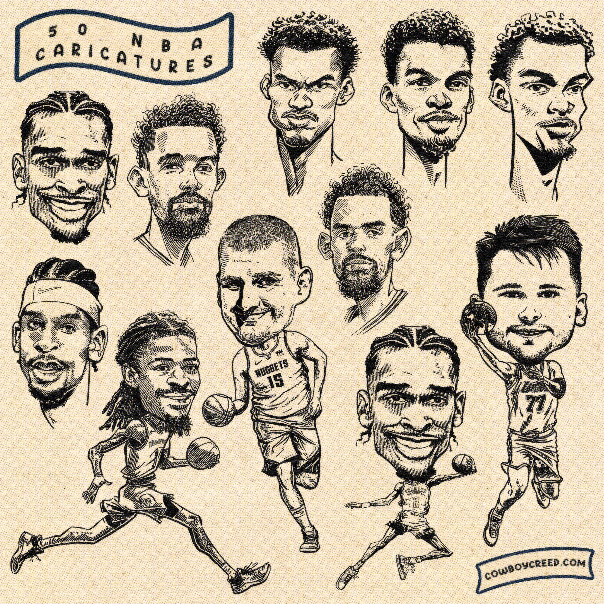 Get a head start on the competition with over 50 high-resolution NBA caricature designs!
