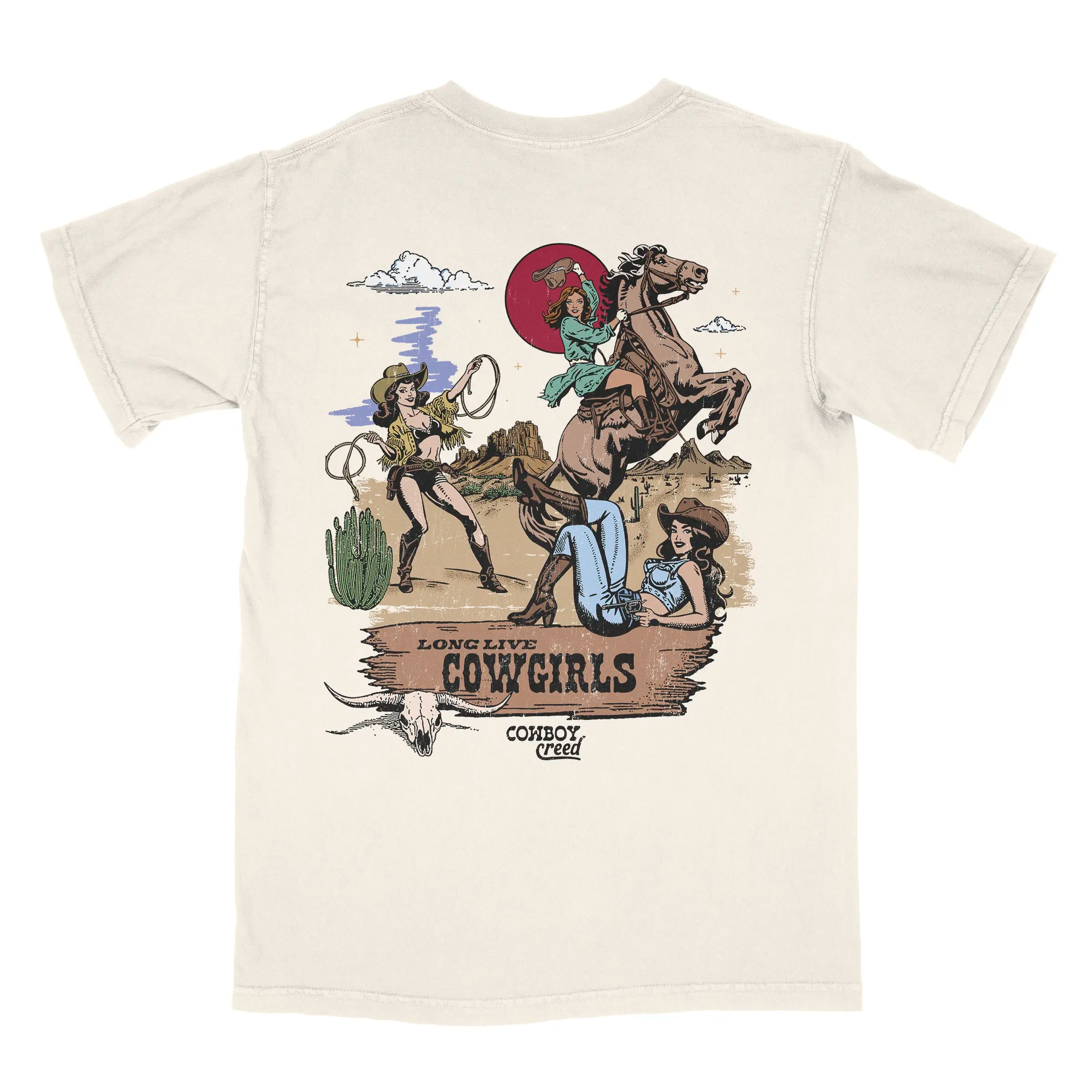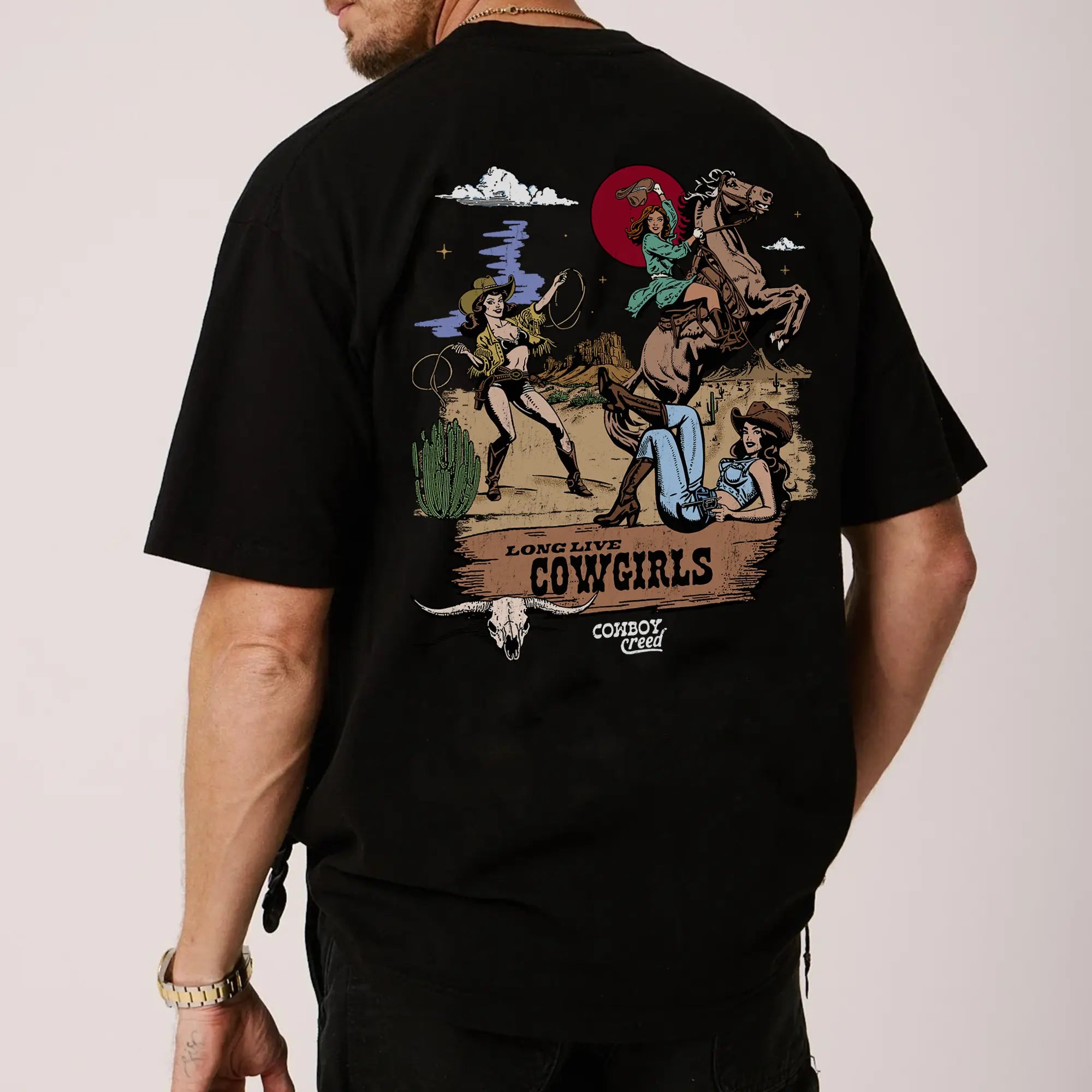 Celebrate the untamed spirit of the West with our Long Live Cowgirls Signature Tee. This striking design features three iconic... Read more
