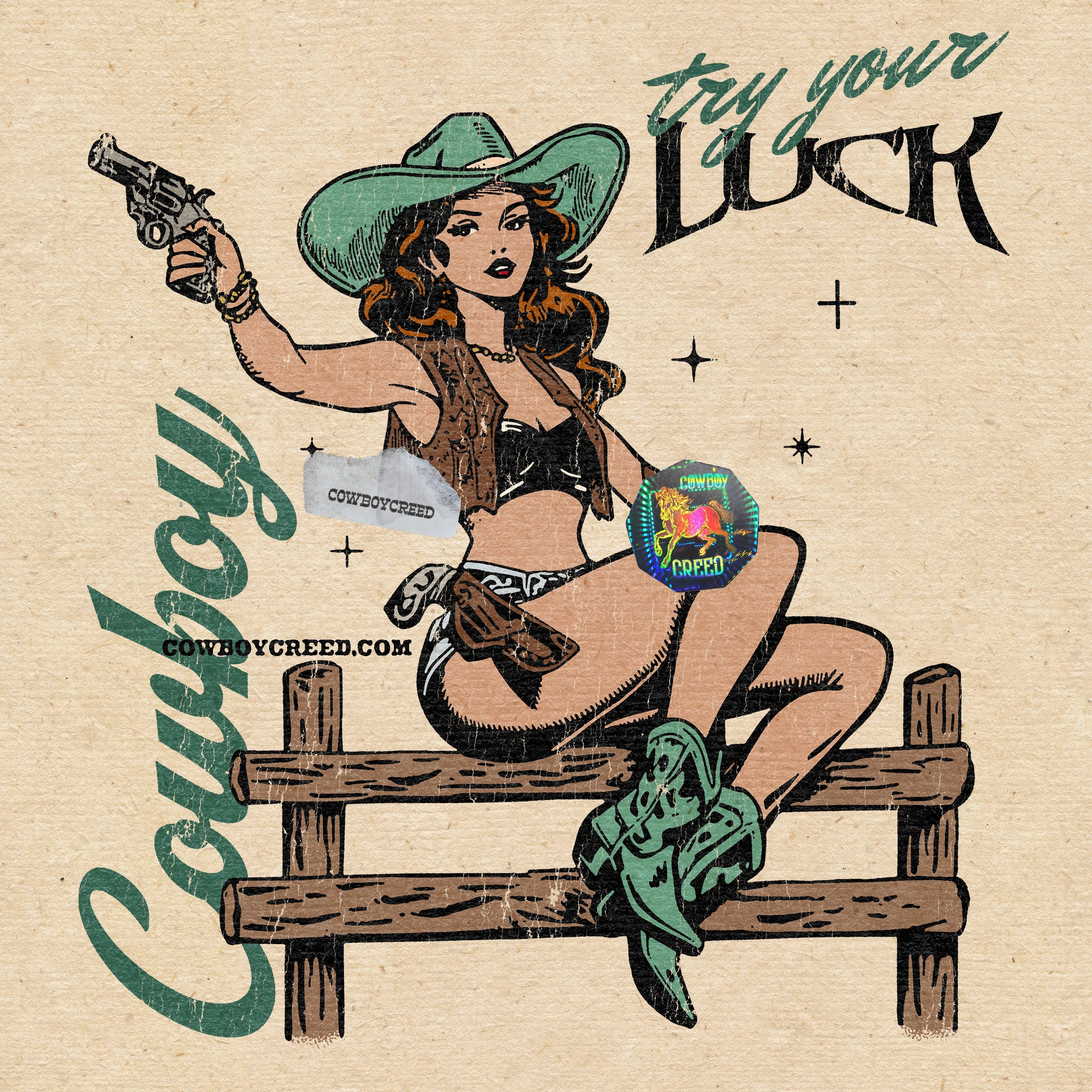 Introducing an exceptional piece of artwork that's sure to ignite your creativity! Try Your Luck Cowboy is now available for digital download, offering a meticulously crafted illustration that captures the essence of cowgirls in the American Wild West. Whether you're a graphic designer, entrepreneur, or simply a lover of Vintage Western art, this will enhance your projects or your décor.