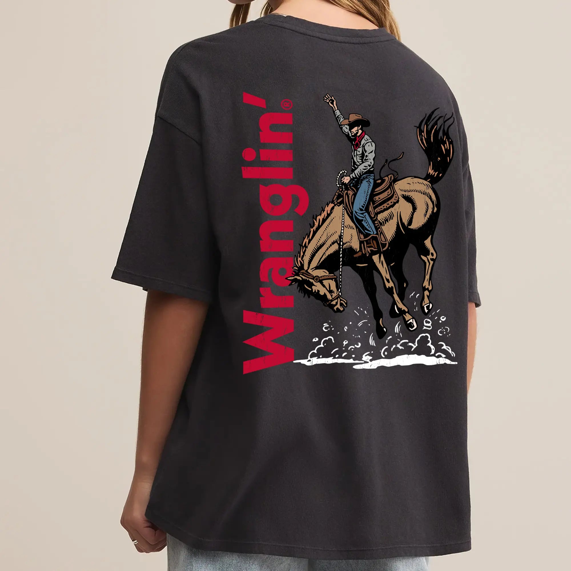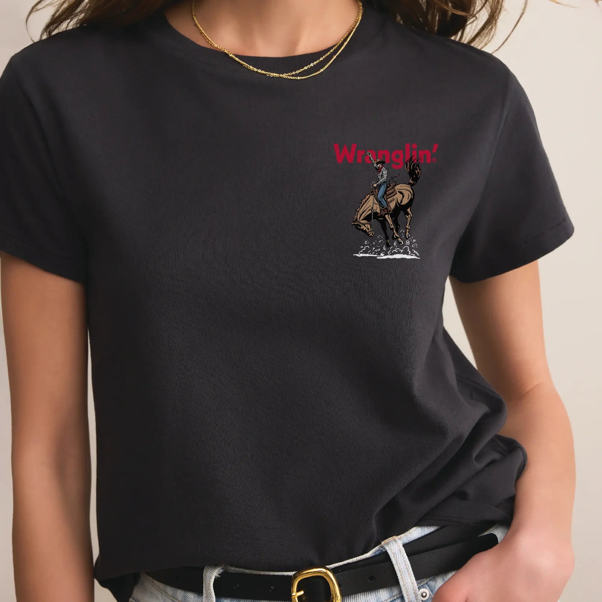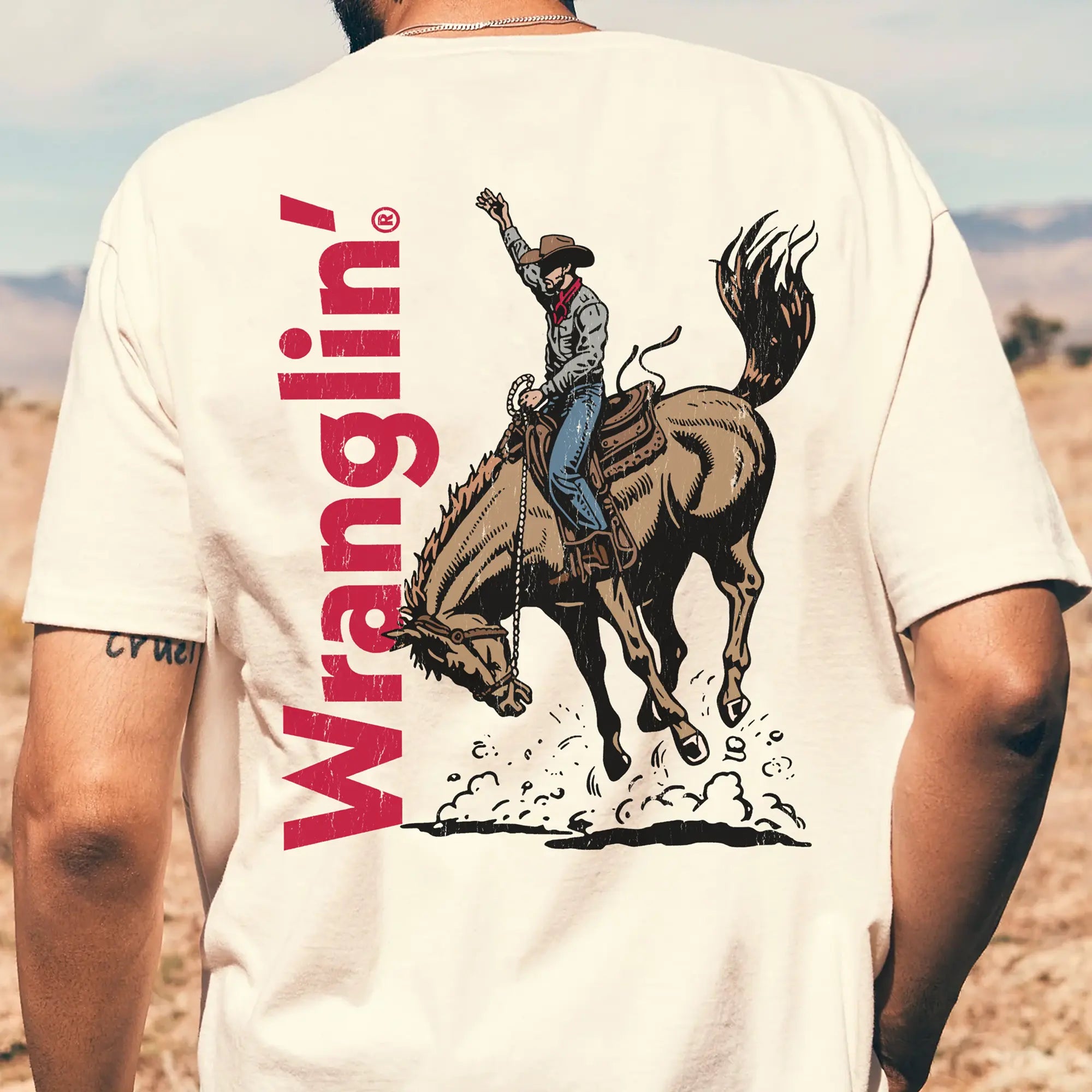 Hold on tight — the Wranglin' Signature Tee captures the raw power of the ride. Featuring a rugged cowboy mid-action... Read more